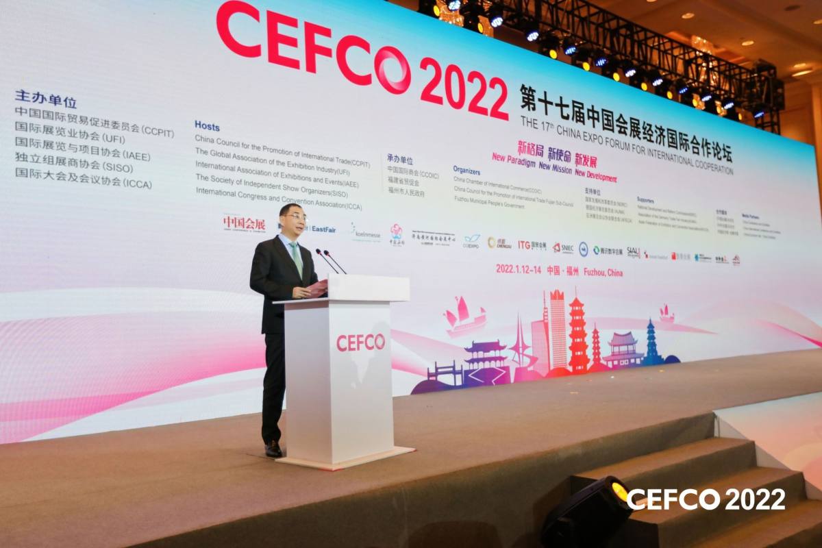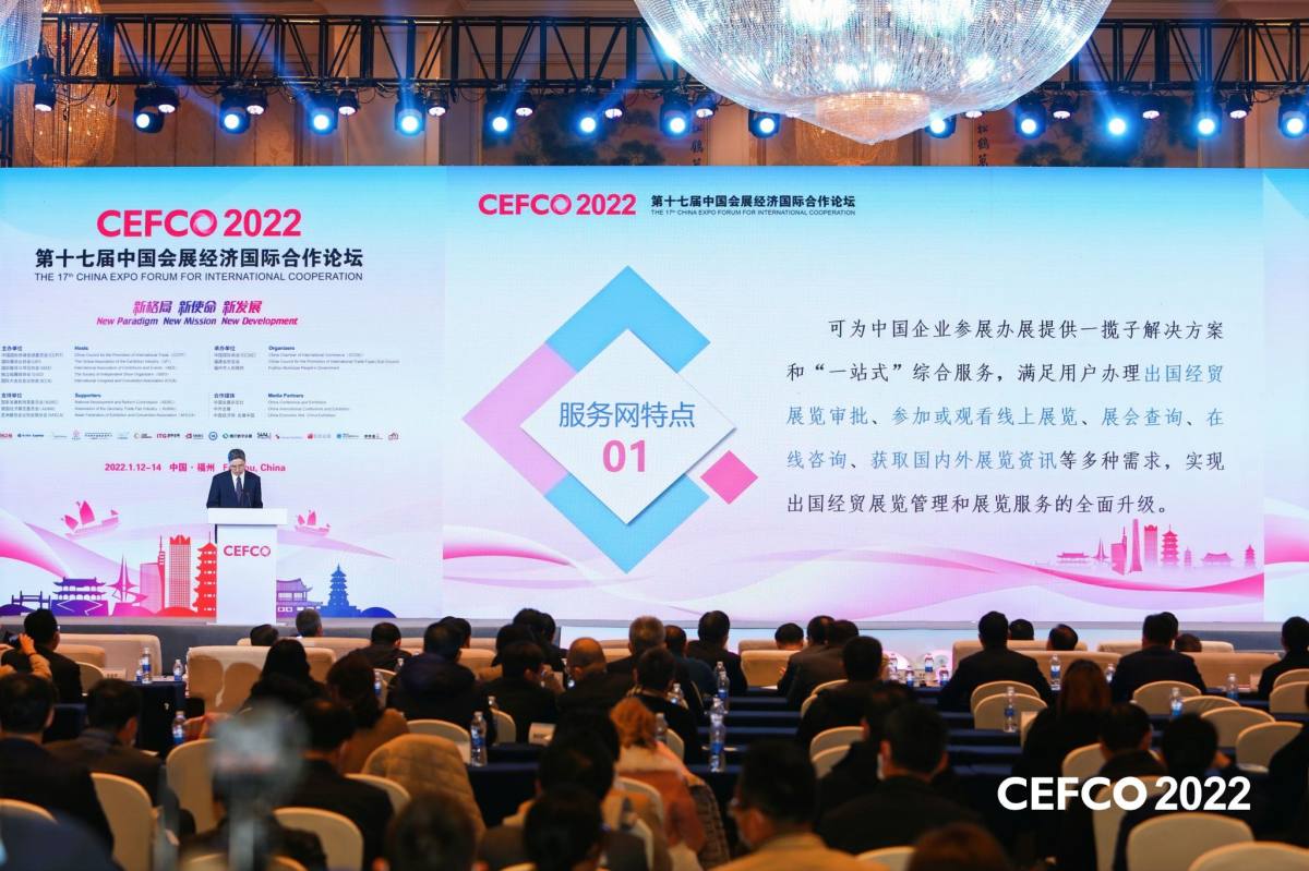 2022年1月12日至14日,第十七届中国会展经济国际合作论坛(CEFCO 2022)在福建省福州市举行。CEFCO论坛由 、国际展览业协会、国际展览与项目协会、独立组展商协会、国际大会及会议协会共同主办,中国国际商会、福建省贸促会、福州市人民政府承办。此次论坛旨在深入探讨会展业未来发展趋势,进一步提振行业信心,推动会展业克服新冠肺炎疫情不利影响,实现高质量发展。