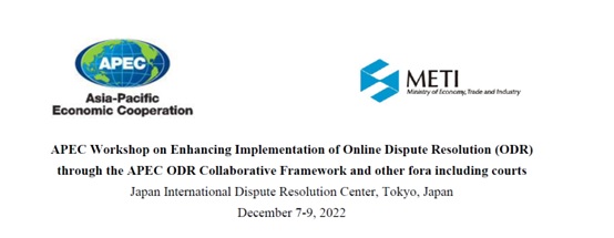 2022年12月7-9日,亚太经合组织(APEC)经济委员会(EC)关于网上争议解决(ODR)的研讨会在日本东京成功举办。会议围绕“通过APEC ODR合作框架和多元争议解决促进ODR的使用”的主题展开,会期三天,以线上线下相结合的方式进行,来自中国、中国香港、美国、日本、新加坡、加拿大、印度尼西亚等国家和地区的政府部门、争议解决机构和学界的近50位在线争议解决领域的专家、学者、从业人员等参加了会议。贸仲作为APEC ODR机制下现有四个ODR服务机构之一,受邀派代表团线上参会并发言。