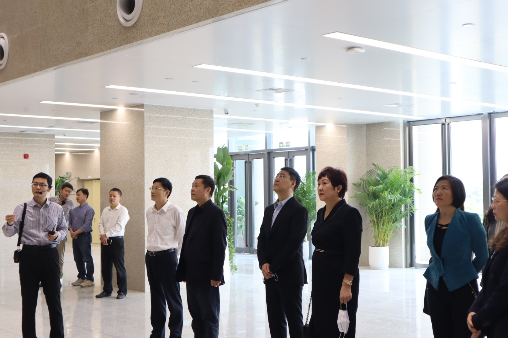 王承杰秘书长一行参观了第一巡回法庭(第一国际商事法庭)前海新址,综合办公室副主任李熠星详细介绍了法院各庭室布局以及现代化服务设施配备情况,并特别介绍了法庭和办公区智能化、人性化、功能多样化的设计理念。