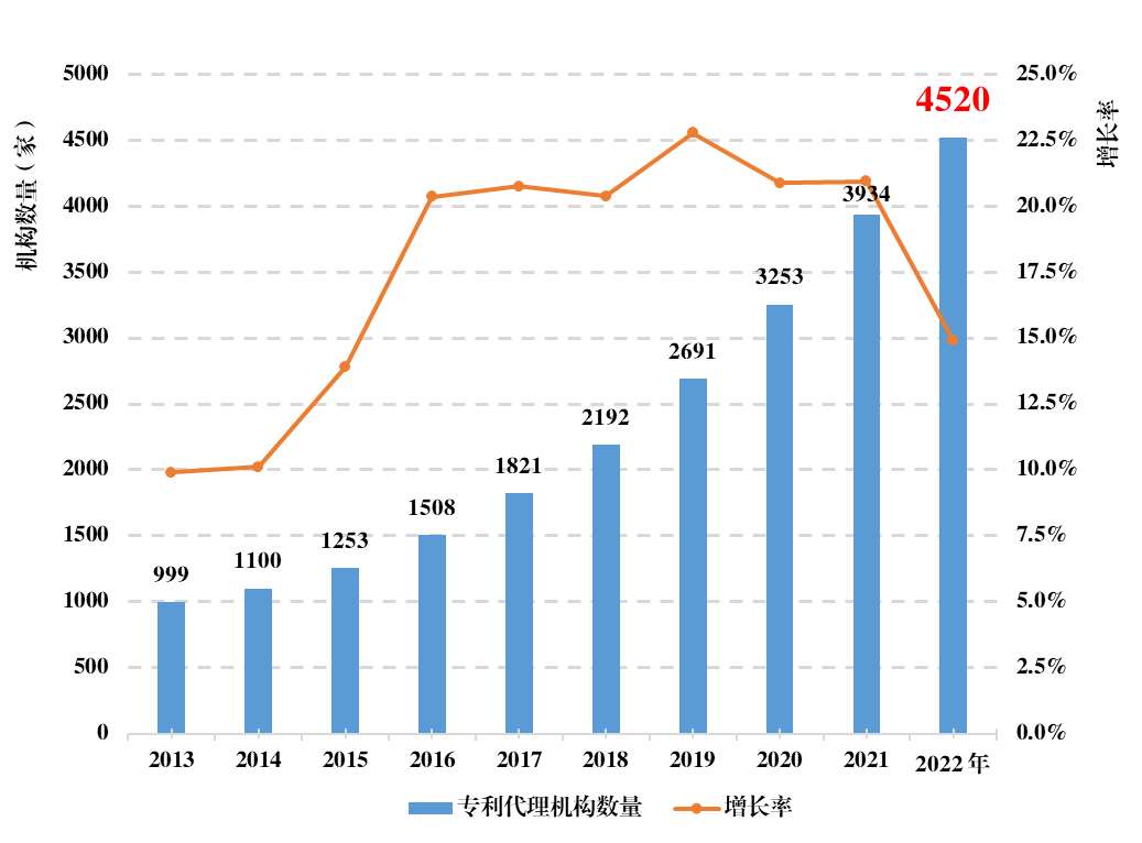 伴随着我国知识产权事业的快速发展,专利代理行业取得了长足进步。截至2022年底,我国专利代理机构共有4520家(不含港澳台地区)。