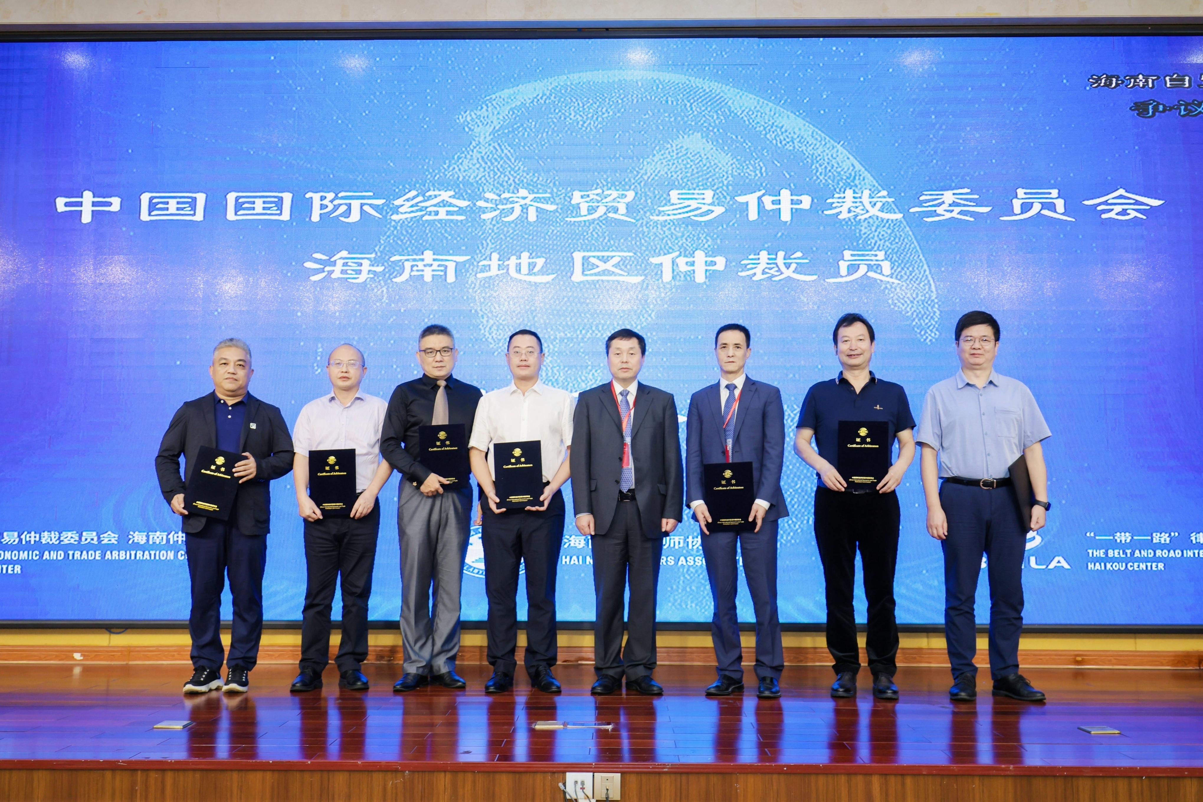 开幕式结束后,进入贸仲海南地区仲裁员聘任仪式环节。王承杰秘书长为贸仲海南地区仲裁员代表颁发了仲裁员聘书。海南省律协仲裁和调解专业委员会主任、北京天驰君泰律师事务所海口分所执行主任胡振先生代表新聘任仲裁员发言。