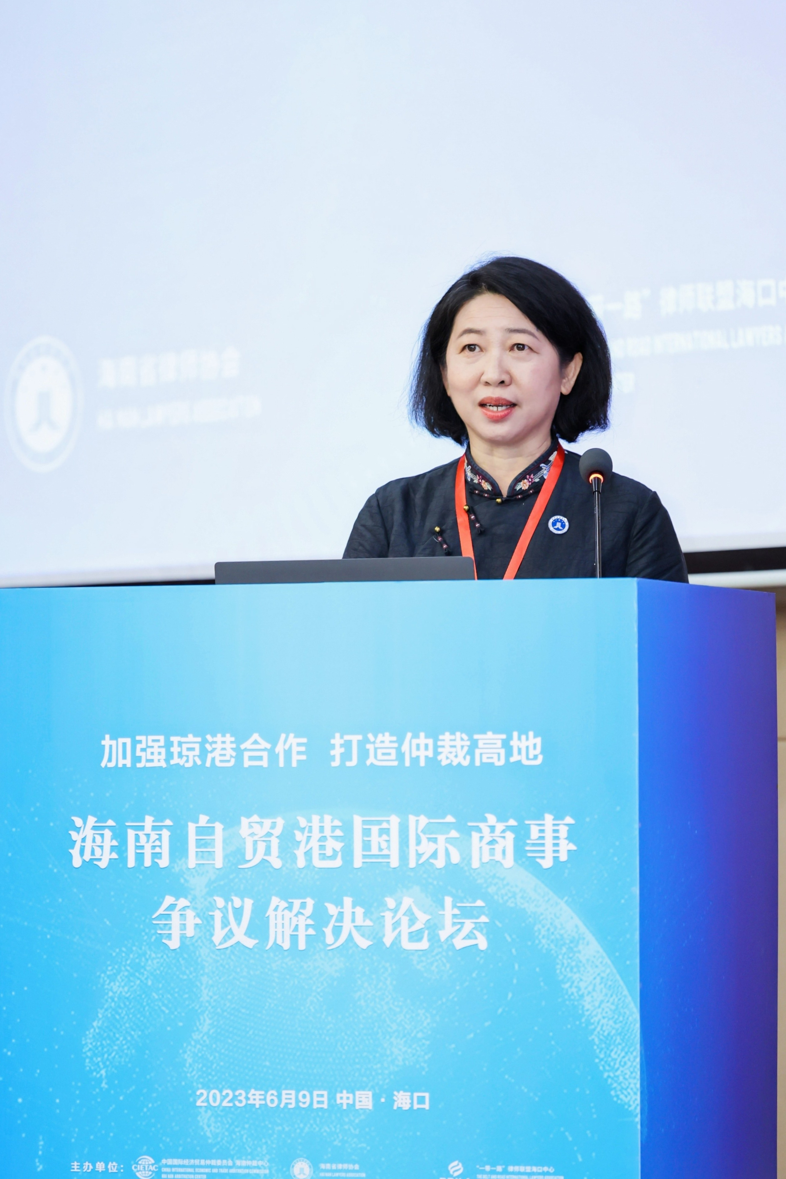 2023年6月9日,由中国国际经济贸易仲裁委员会海南仲裁中心(以下简称“贸仲海南中心”)、海南省律师协会、“ 一带一路”律师联盟海口中心联合主办,贸仲香港中心、海南省贸促会、海口市贸促会、海南省侨联涉侨纠纷人民调解委员会和海口国际商事调解中心协办的以“加强琼港合作,打造仲裁高地”为主题的海南自贸港国际商事争议解决论坛在海口成功举办。本次论坛旨在为琼港两地的法律服务行业搭建起深化交流与合作的桥梁,为日后琼港两地法律从业者勠力同心,共同助力海南自贸港国际化、法治化、便利化营商环境的建设奠定坚实的基础。贸仲副主任兼秘书长王承杰、“一带一路”律师联盟秘书长康煜、海南省司法厅副厅长王廷忠、海南省律师协会会长符琼芬出席开幕式并致辞。香港特区律政司副司长张国钧通过视频致辞。开幕式由贸仲海南中心副秘书长吕岩主持。
