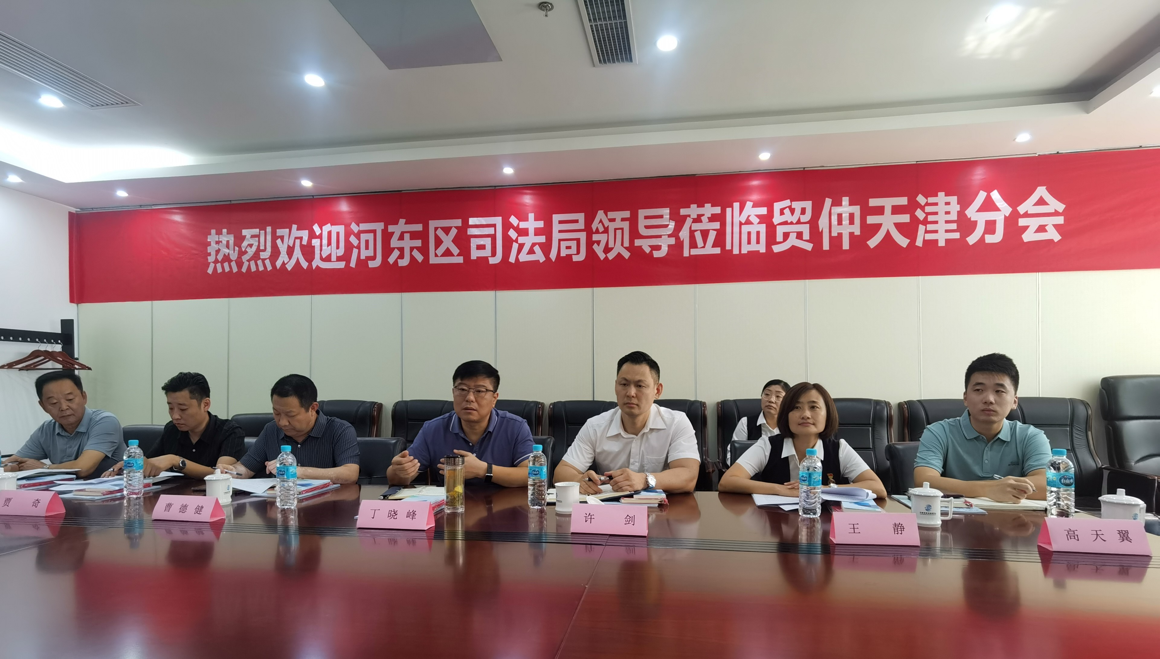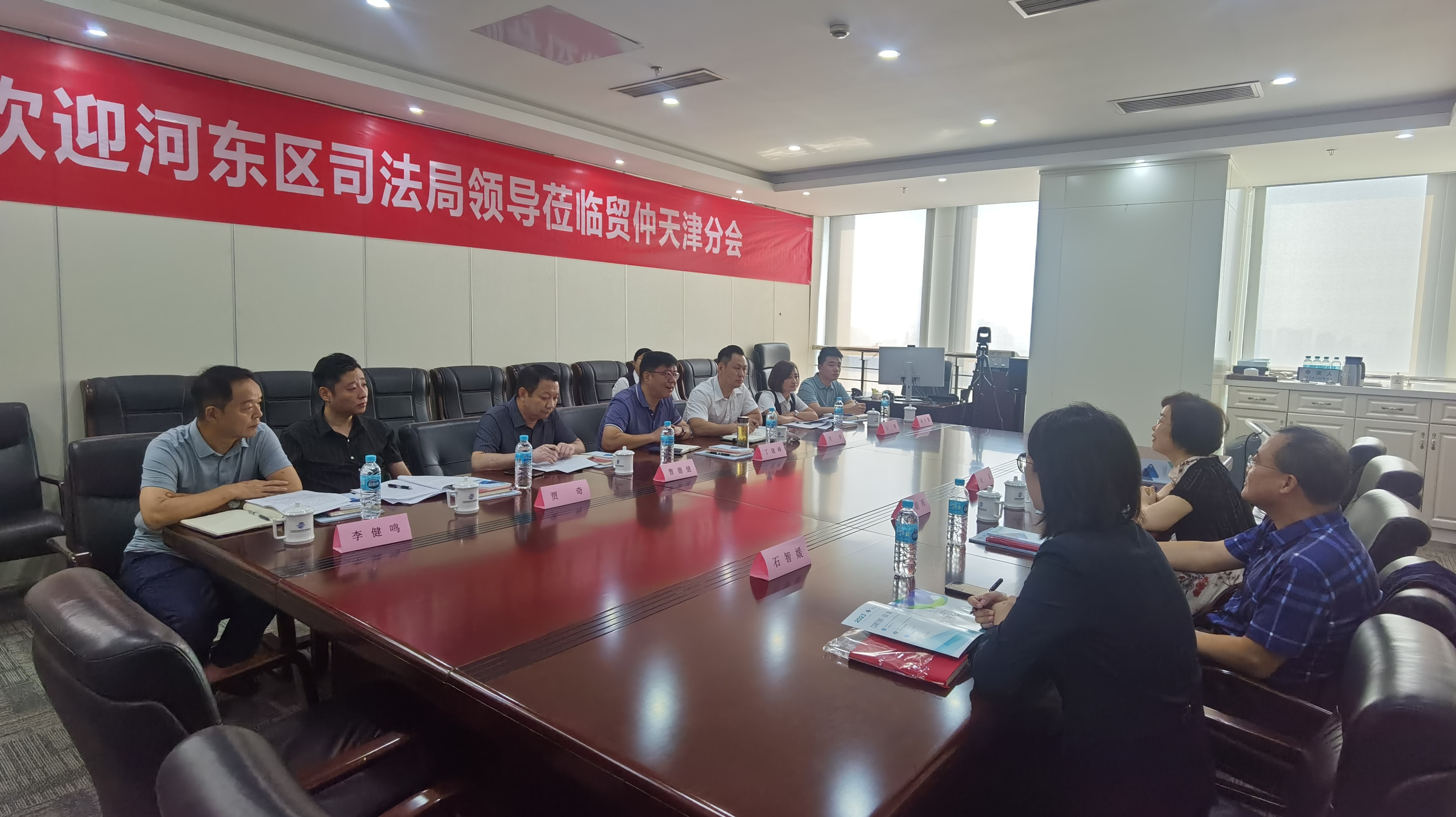 2023年8月31日,河东区司法局党组书记、局长丁晓峰,党组成员、副局长许剑一行8人到访中国国际经济贸易仲裁委员会天津国际经济金融仲裁中心(以下简称“贸仲委天津仲裁中心”)进行调研,贸仲委天津仲裁中心秘书长周雯、中国国际经济贸易仲裁委员会资深仲裁员靳朝晖等就合作共建相关问题进行了座谈交流。