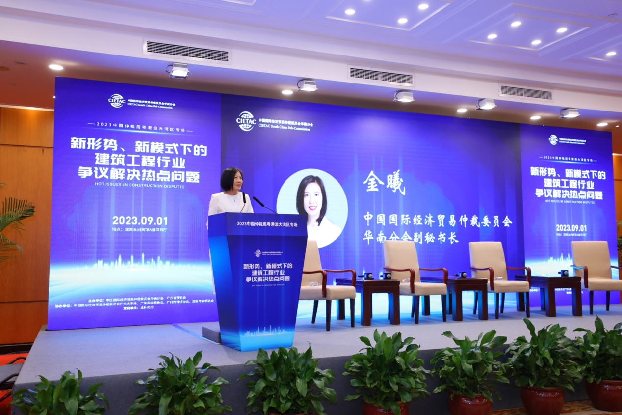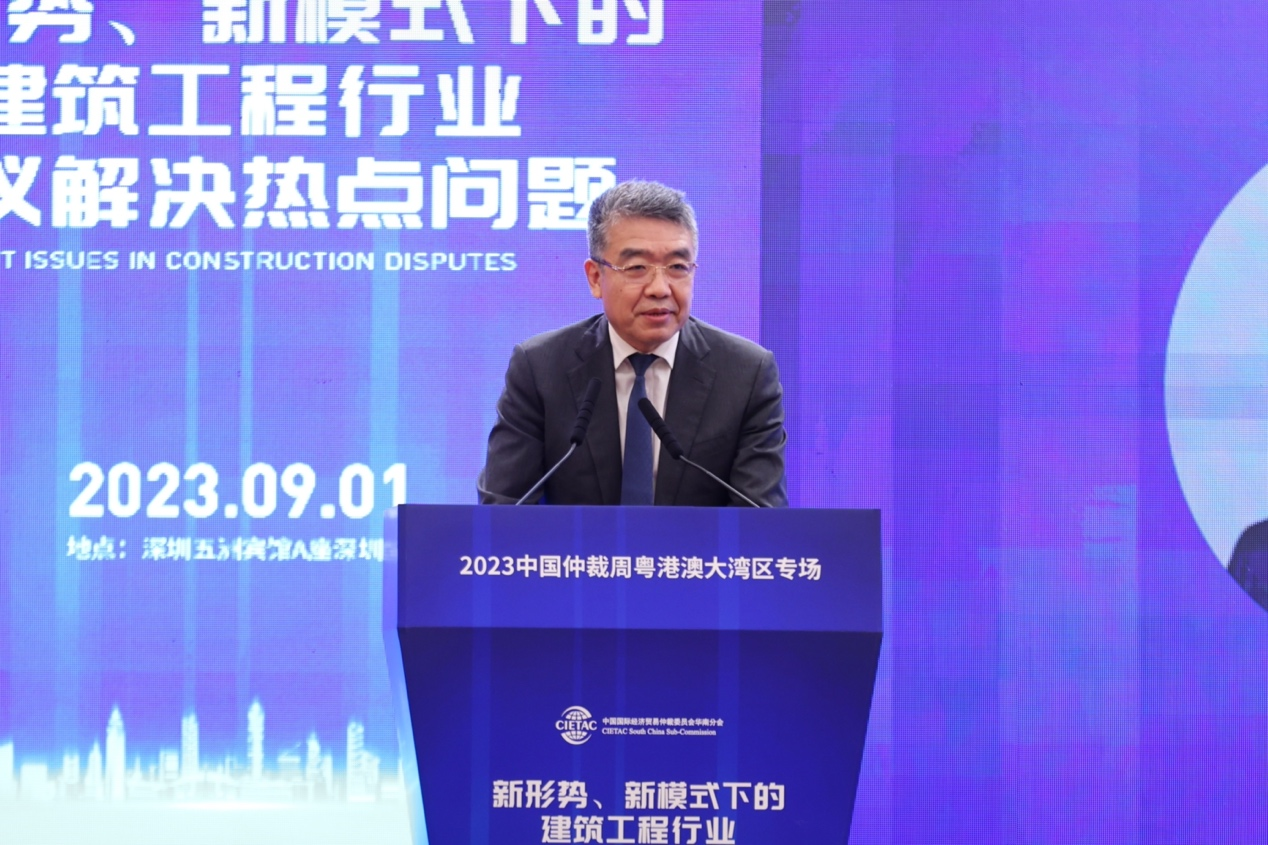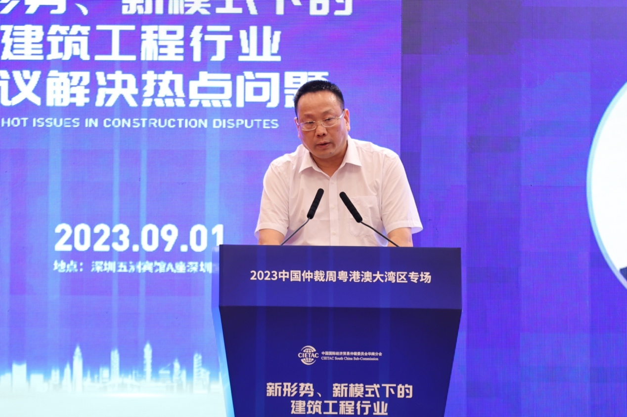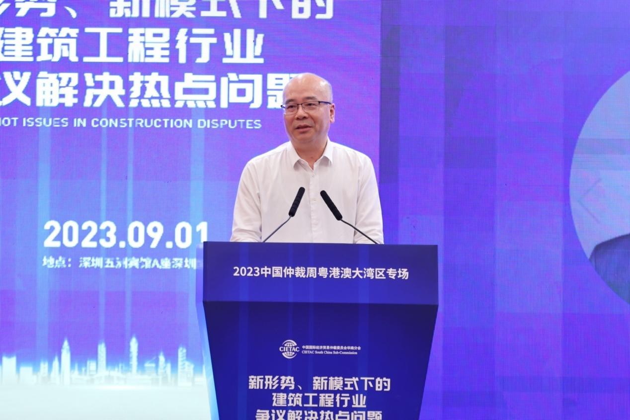2023年9月1日,由中国国际经济贸易仲裁委员会华南分会(以下简称“贸仲华南分会”)、广东省贸促会联合主办,中国国际经济贸易仲裁委员会广东办事处、广东省律师协会、广州市律师协会、深圳市律师协会、深圳建筑业协会协办,威科先行支持的“新形势、新模式下的建筑工程行业争议解决热点问题”——2023中国仲裁周粤港澳大湾区专场活动在深圳成功举办。本次专场活动旨在深度分析行业热点,在新形势、新模式下讨论建筑工程领域最前沿、最热点法律问题,为行业健康发展贡献力量。本次活动吸引近两百名来自广东、广西、湖南等多地的仲裁员、律师、学者、公司法务及各界人士线下参加,逾4500人通过在线直播平台参加本次活动。广东省贸促会党组成员、副会长邱招贤、贸仲华南分会秘书长李云、广东省律协仲裁专业委员会主任赵汉根以及深圳市律师协会会长张斌出席活动并致开幕辞。会议由贸仲华南分会秘书长助理张晓宇主持。