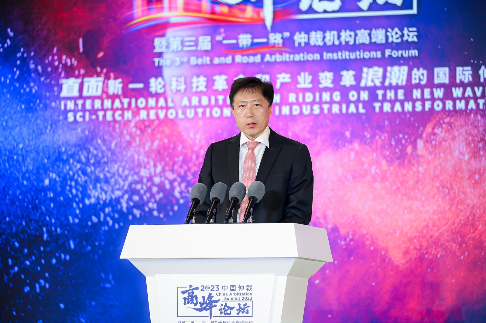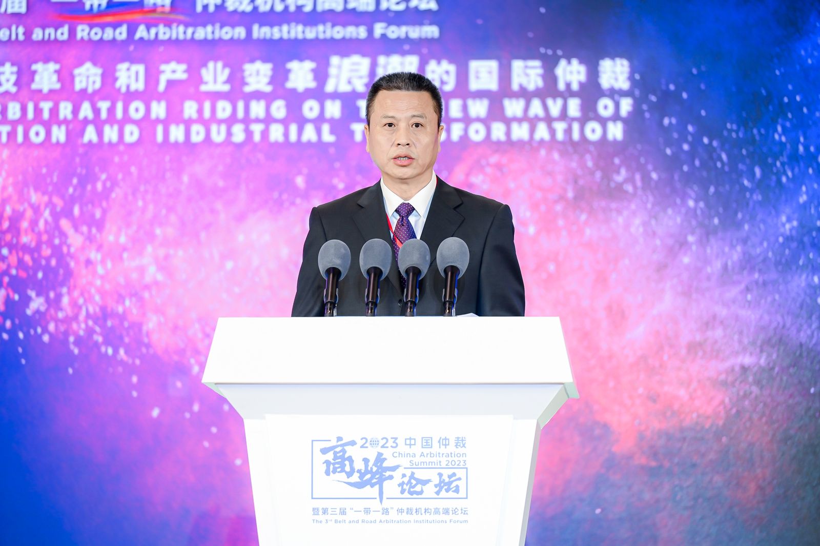9月6日,2023中国仲裁高峰论坛暨第三届“一带一路”仲裁机构高端论坛在京成功举办。本次论坛由中国国际经济贸易仲裁委员会(CIETAC,简称“贸仲”)与联合国国际贸易法委员会(UNCITRAL,简称“联合国贸法会”)共同主办。 副会长、中国国际商会副会长于健龙,联合国贸法会秘书长Anna JOUBIN-BRET女士,最高人民法院审判委员会副部级专职委员、二级大法官刘贵祥出席开幕式并致辞。司法部副部长王振江发表视频致辞。最高人民法院民四庭副庭长张树明发表主旨演讲。司法部公共法律服务管理局一级巡视员孙春英,北京市高级人民法院副院长张雯,以及北京市第四中级人民法院、北京市金融法院、中华全国律师协会等相关领导出席开幕式。贸仲副主任兼秘书长王承杰主持开幕式。