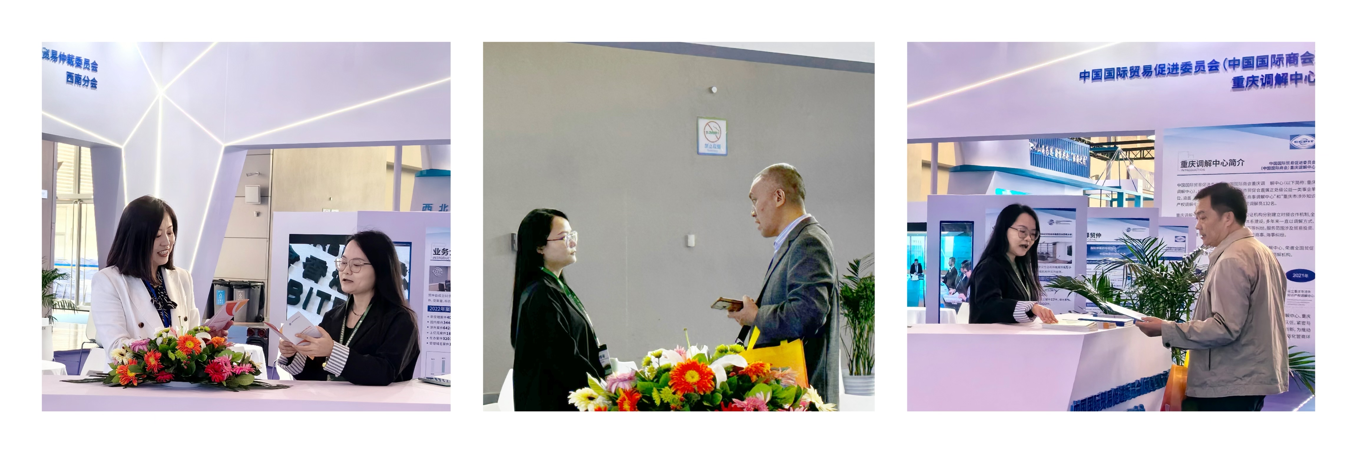 2023年11月1日,由重庆市政府口岸物流办、重庆市贸促会共同主办的“2023陆海新通道国际物流博览会”在重庆开幕。贸仲西南分会应邀参会,并与 (中国国际商会)重庆调解中心、重庆两江新区(自由贸易试验区)人民法院共同为参加本次物流博览会的企业提供仲、调、诉一站式法律咨询服务。