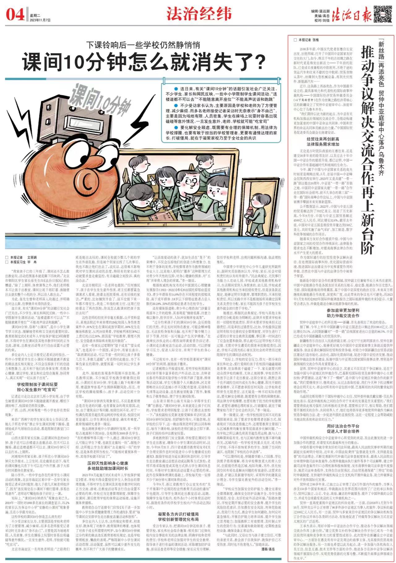 贸仲一直高度重视中亚地区的纠纷处理,一方面,自2018年1月到今年10月,贸仲共公平公正审理了90多件涉中亚地区当事人的案件,争议标的超过100亿元人民币。另一方面,贸仲与多家来自中亚地区的争议解决机构签订合作协议并举办各类研讨活动,有效地促进了仲裁等争议解决方式在亚太地区的广泛适用。