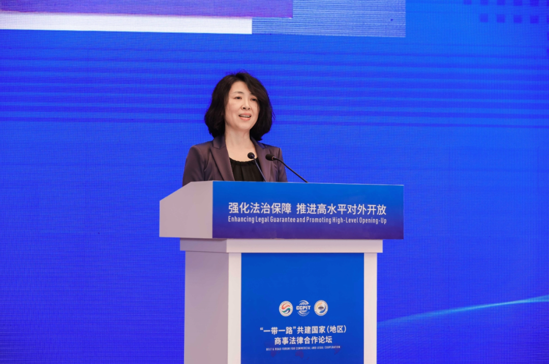 李庆霜女士在致辞中表示,习近平主席在第三届“一带一路”国际合作高峰论坛开幕式主旨演讲中提出,各国应携起手来实现和平发展、互利合作、共同繁荣的世界现代化,为高质量共建“一带一路”明确了努力方向。陕西是中国向西开放的前沿和内陆改革开放的高地,在促进我国与共建国家和地区深化合作、互利共赢中,发挥了巨大的辐射带动作用。她建议,坚持多边主义,助力构建开放型世界经济,深化工商法治合作,形成互利共赢格局,聚焦企业需求,搭建高质量合作平台,为共建“一带一路”行稳致远作出不懈努力和新的贡献。