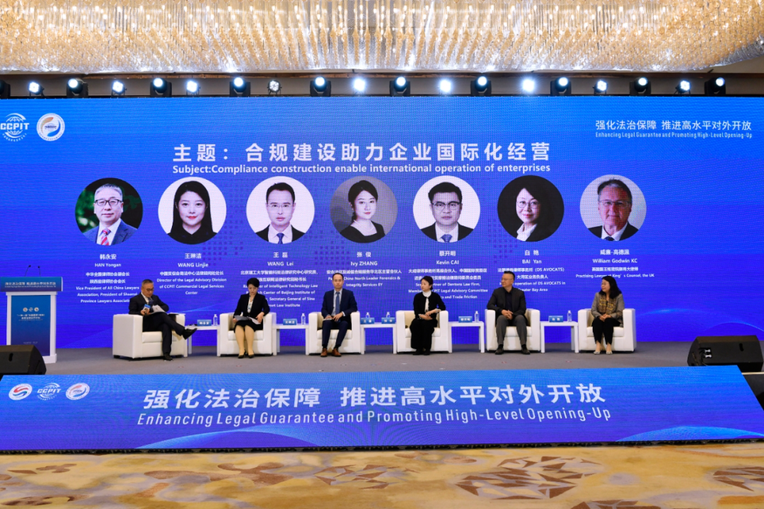 最高人民法院第六巡回法庭分党组副书记、副庭长,一级高级法官罗智勇,土耳其驻华大使馆首席商务参赞阿塔坎·奥兹德米尔, 商法中心副主任张顺,中国政法大学中欧法学院欧方执行院长罗纳德·蒙塔古·西里,亚洲国际仲裁中心主席,亚洲多元争议解决研究院主席拿督桑德拉·拉铢,围绕论坛主题分别发表主旨演讲。在专题研讨环节,中华全国律师协会副会长、陕西省律师协会会长韩永安, 商法中心法律顾问处处长王琳洁,北京理工大学智能科技法律研究中心研究员、新浪互联网法律研究院秘书长王磊,安永法证及诚信合规服务华北区主管合伙人张俊, 经贸摩擦法律顾问委员会委员、大成律师事务所高级合伙人蔡开明,法国德尚律师事务所北京代表处代表、大湾区业务负责人白艳,英国国王枢密院御用大律师威廉·高德温,6位嘉宾围绕“合规建设助力企业国际化经营”展开热烈讨论。主旨演讲和专题研讨,为企业深入对接国际经贸规则,强化国际竞争力,搭建合规管理体系,用法治思维和法律武器解决国际经营中遇到的困难问题和实际需求提供了专业遵循意见。