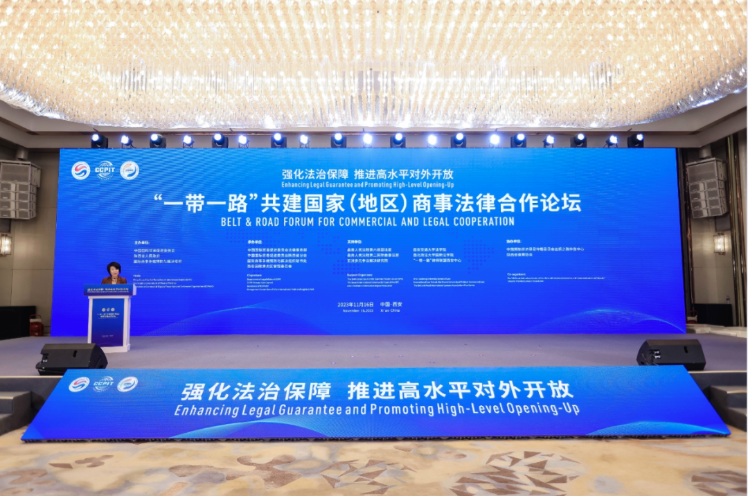 作为第七届丝博会重要活动之一,本次论坛是贯彻落实习近平主席在第三届“一带一路”国际高峰合作论坛上提出高质量共建“一带一路”八项行动的具体行动,是陕西深度融入共建“一带一路”大格局、着力打造内陆改革开放高地的具体举措。论坛以“强化法治保障,推进高水平对外开放”为主题,邀请来自“一带一路”重点国家和地区工商界、法律界代表,聚焦商事法律合作,以线上线下相结合方式开展研讨交流,旨在加强“一带一路”商事法律服务国际交流与合作,优化商法服务质量,携手推动共建“一带一路”进入高质量发展新阶段,为营造陕西市场化、法治化、国际化一流营商环境提供有力支撑。