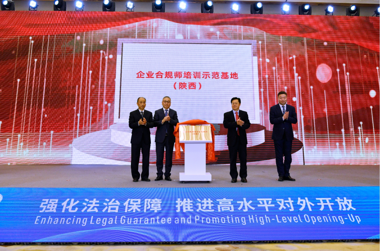 商法中心副主任张顺、陕西省贸促会党组书记王运林、西北政法大学国际法学院院长刘亚军、陕西省律师协会会长韩永安共同为“企业合规师培训示范基地(陕西)”揭牌,标志着西北首家企业合规师培训示范基地落地陕西。企业合规师培训示范基地(陕西),是西北首家企业合规师培训教育平台,将有效发挥陕西优秀法治教育资源,为我省在“走出去”战略过程中实现强陕兴秦具有重大的引领作用和现实意义,并将为陕西乃至西部地区企业强化合规建设发展提供有力支撑。