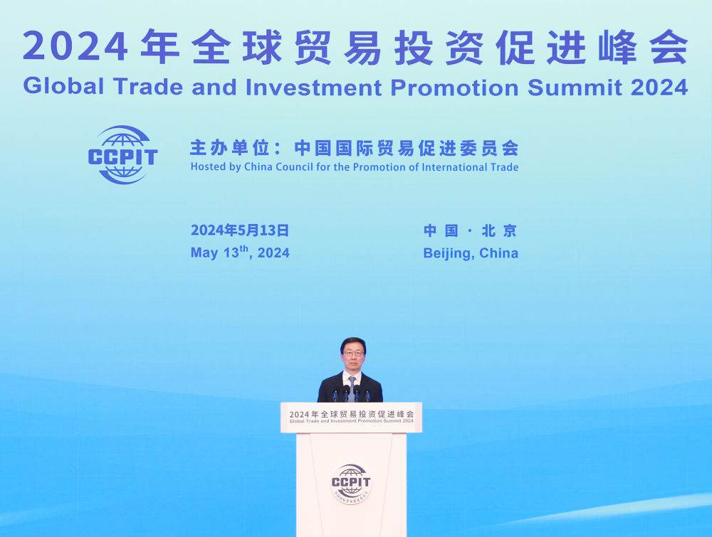 5月13日,国家副主席韩正在北京出席2024年全球 峰会开幕式并致辞。