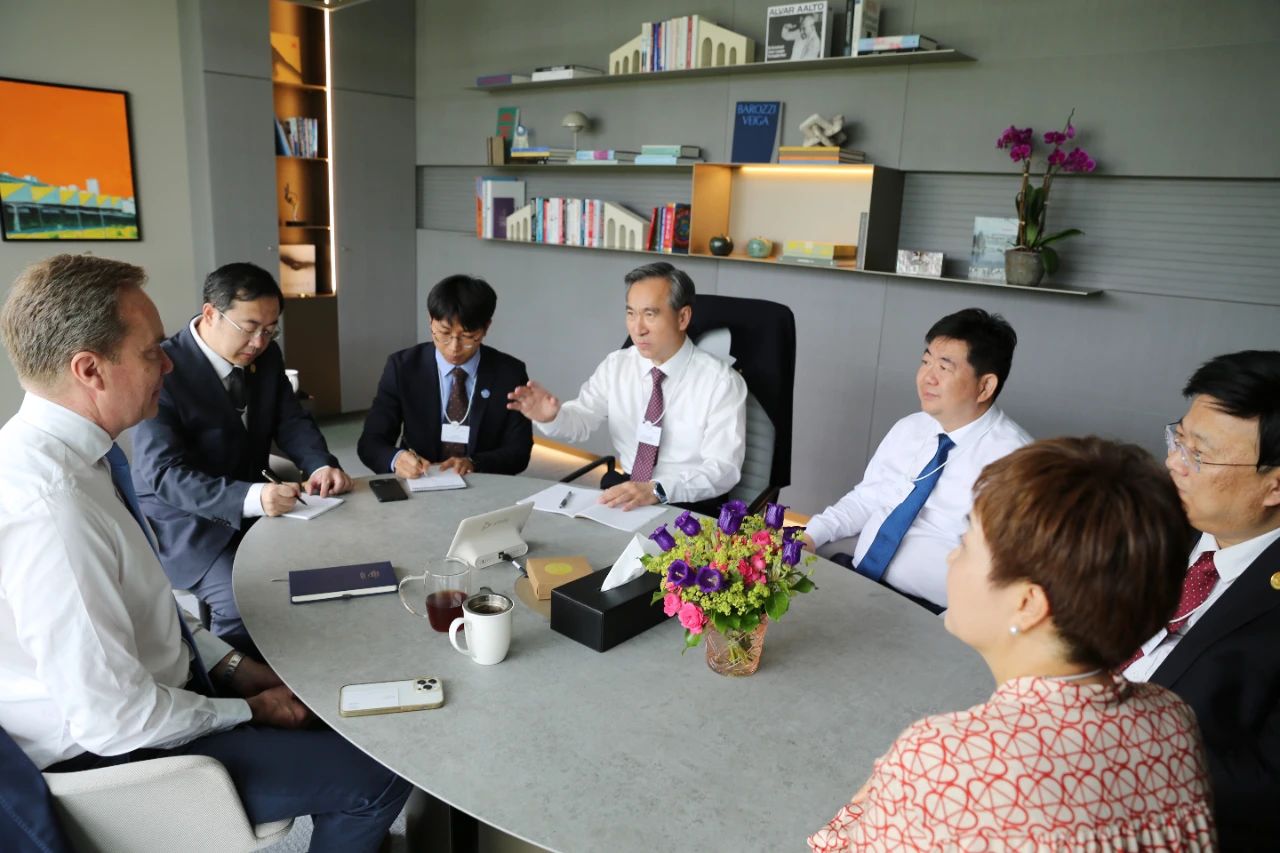 6月17日, 会长任鸿斌在瑞士日内瓦会见世界经济论坛总裁布伦德,双方围绕国际经济形势、深化全球工商界交流合作、促进全球经济贸易复苏及达沃斯论坛、链博会等议题进行了友好交流。