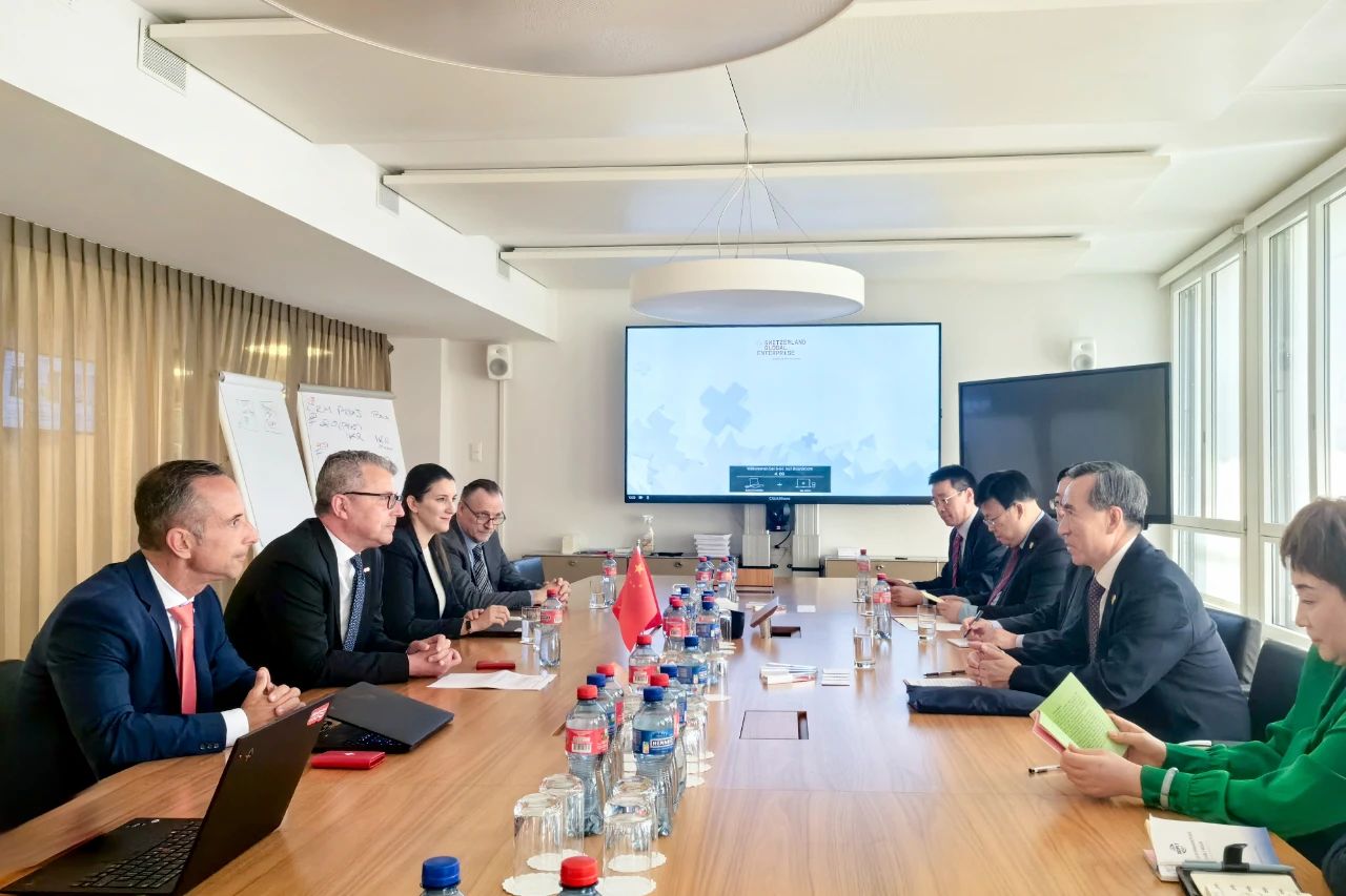 6月19日, 会长任鸿斌在瑞士苏黎世会见瑞中经济协会主席魏希霆,双方就在新发展阶段持续深化两机构合作、推动中瑞工商界交流互动及链博会等议题进行了友好交流。之后,任鸿斌还会见了瑞士贸易与投资署全球网络与机构关系总监斯特凡·巴尔尼。
