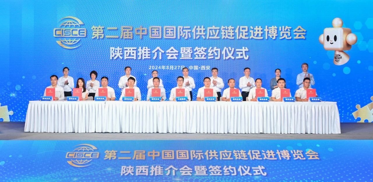8月27日,第二届中国国际供应链促进博览会陕西推介会暨签约仪式在西安成功举办。 会长任鸿斌、陕西省副省长陈春江出席会议,与参展企业负责人围绕产业技术创新发展、开拓海外市场、做好链博会展览展示等进行交流,并赴有关企业考察调研。