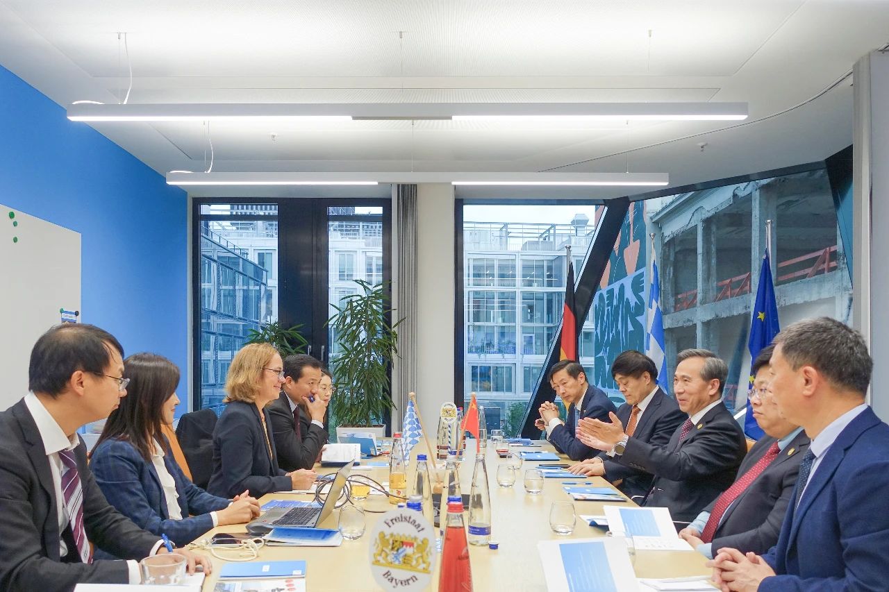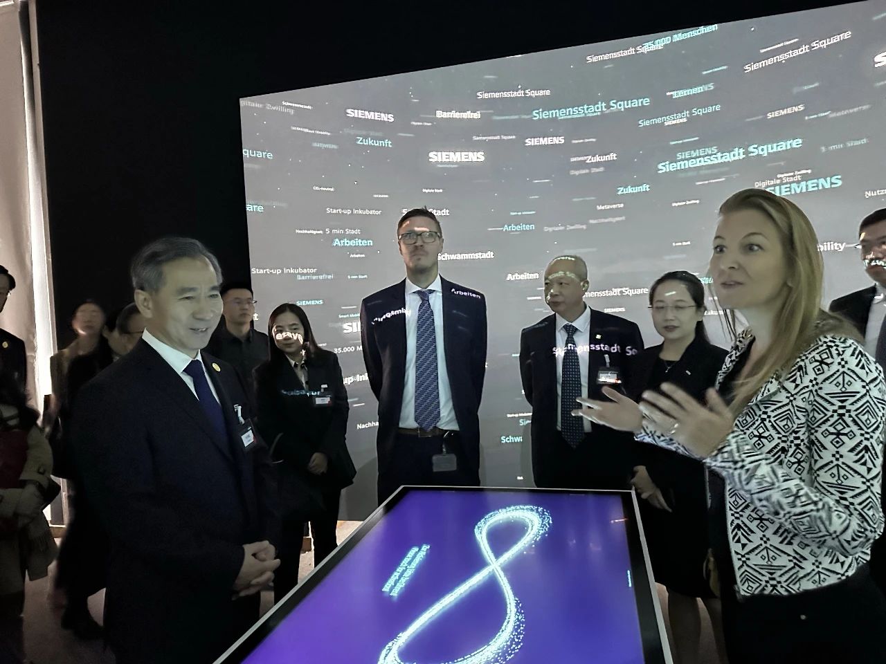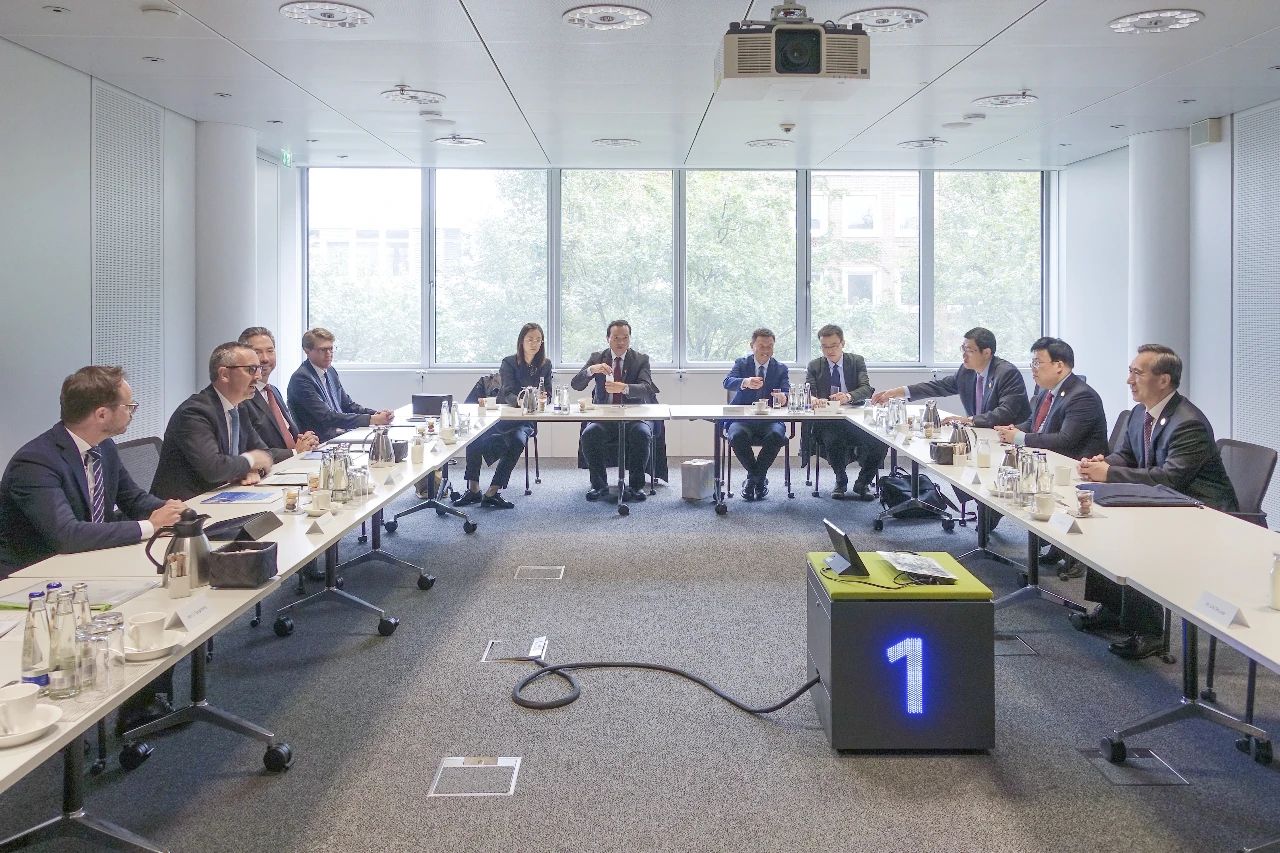 12-13日,任鸿斌率中国企业家代表团分别调研西门子公司柏林总部智慧园区、克诺尔集团慕尼黑研发中心和宝马集团工厂,并与德国巴伐利亚州投资促进局举行会谈。