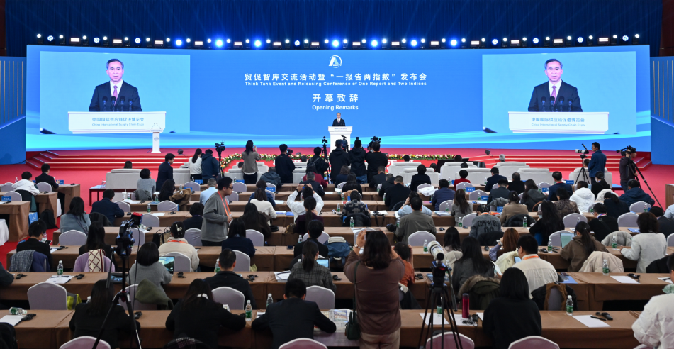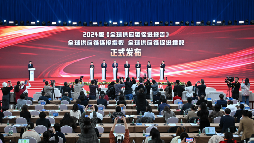 11月26日下午,第二届链博会主题活动—贸促智库交流活动暨“一报告两指数”发布会在京成功举办,会上首次发布2024版《全球供应链促进报告》、全球供应链促进指数,以及研究院与央视总台财经节目中心联合研发的全球供应链连接指数, 会长任鸿斌出席发布会并致辞,为推动全球供应链的开放合作贡献链博智慧。