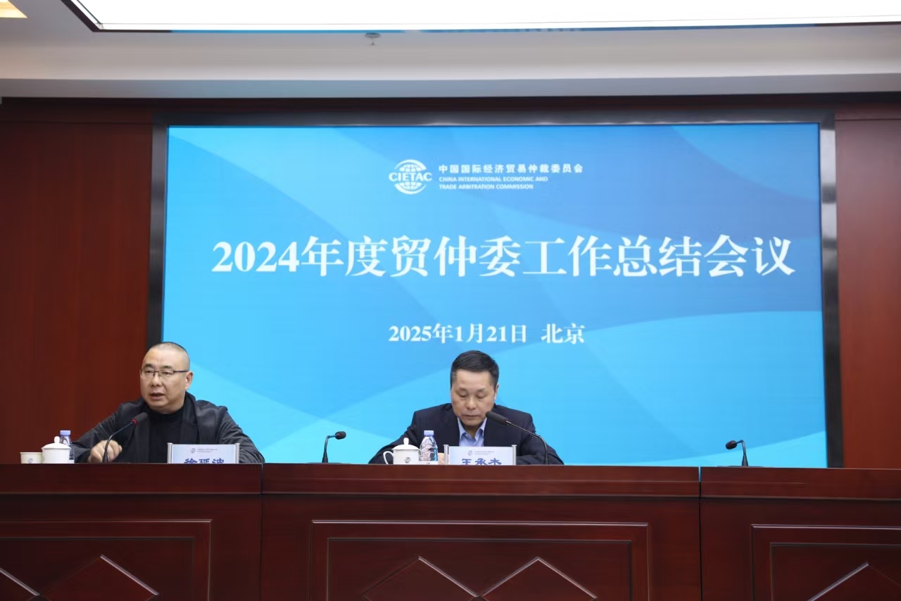 2025年1月21日下午,贸仲委2024年度干部职工总结大会在京召开。贸仲委全体领导班子成员、总分会干部职工齐聚一堂,共同回顾2024年工作成果,分析面临的新形势,全面部署2025年重点工作任务。贸仲委副主任兼秘书长王承杰作2024年工作报告,贸仲委党委书记徐延波主持会议。
