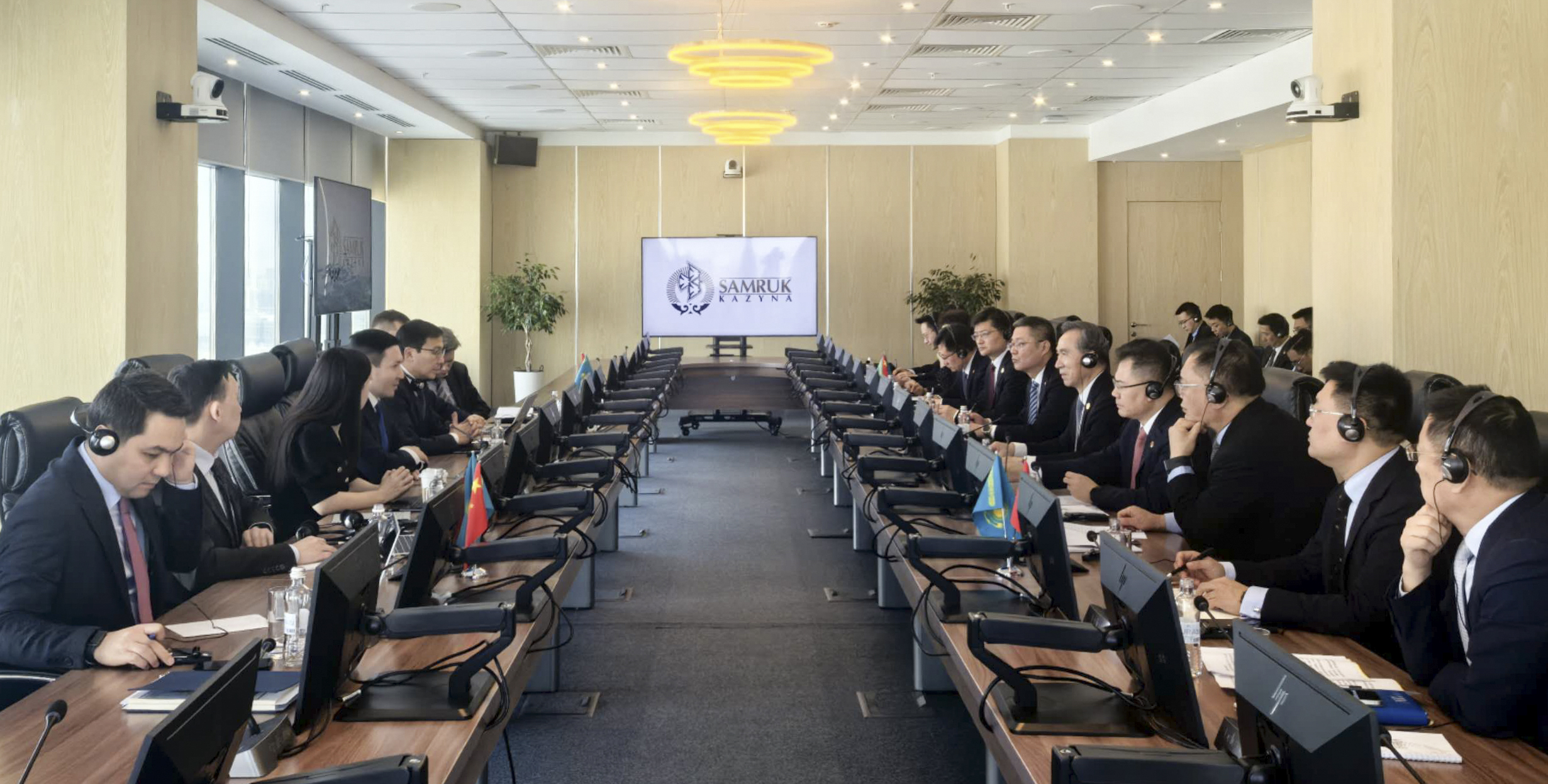 2月11日,任鸿斌在阿斯塔纳会见哈萨克斯坦萨姆鲁克—卡森纳国家基金主席扎库波夫