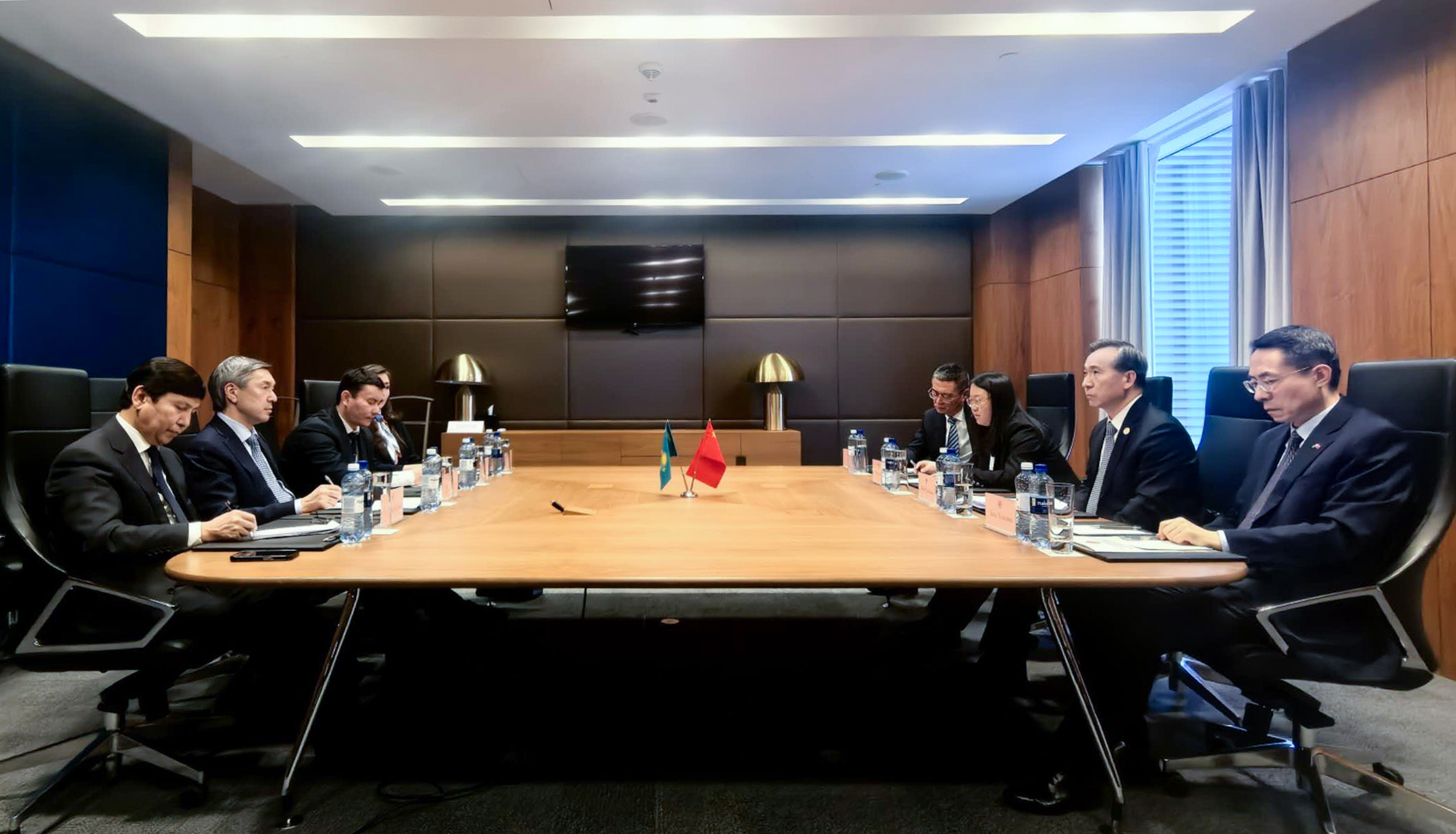 2月12日,任鸿斌在阿拉木图会见哈萨克斯坦中央信贷银行集团董事会主席巴伊森托夫