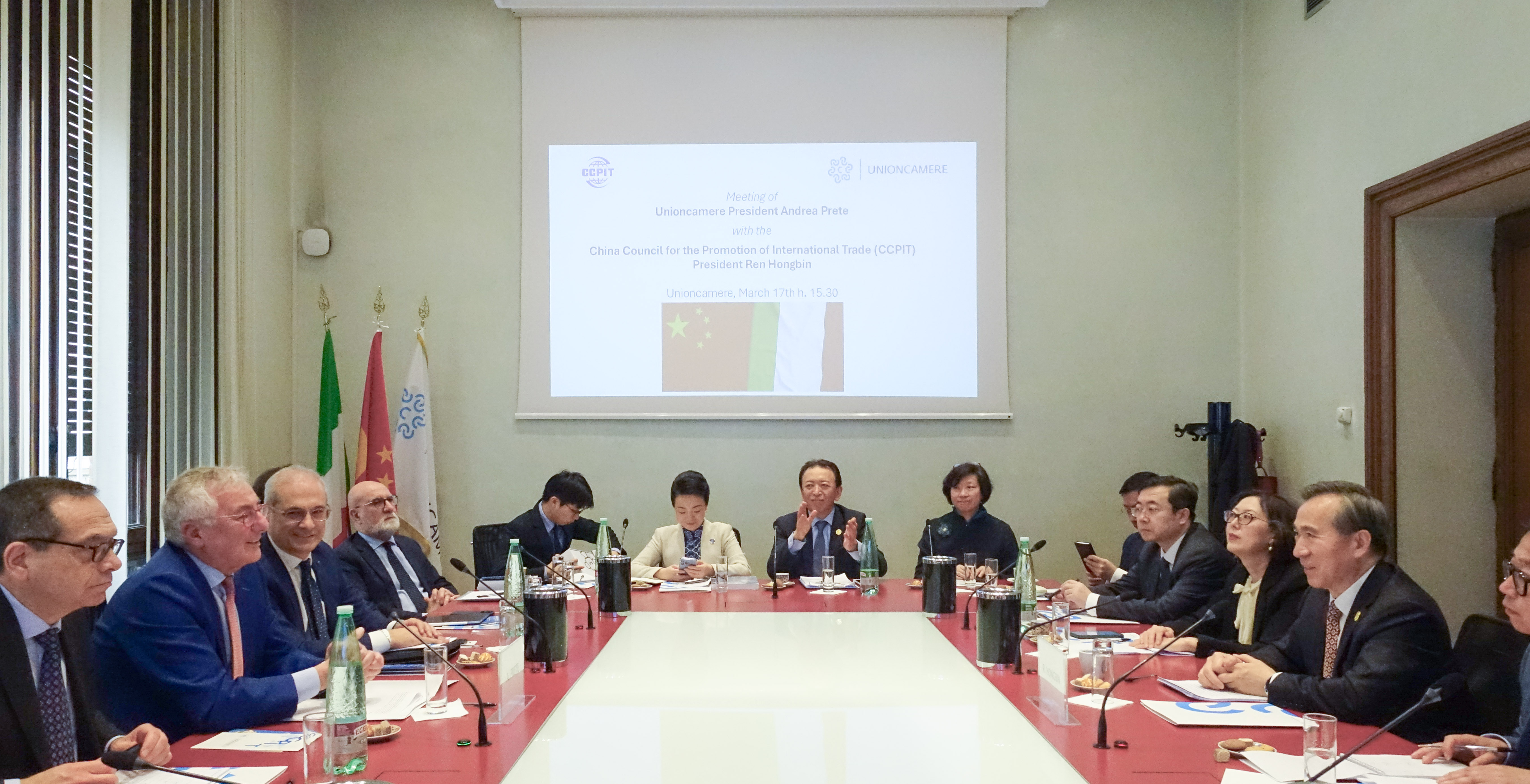 中方宣介全国两会精神,强调中国工商界愿与各方一道,践行真正的多边主义,推动贸易投资自由化便利化;中意两国经贸合作潜力大、产业互补性强,愿与意方加强传统领域合作,并开拓新能源、数字经济等新领域,特别是帮助双方中小企业对接,希意方把握中国发展机遇,持续深耕中国市场,欢迎意大利企业参加第三届链博会。