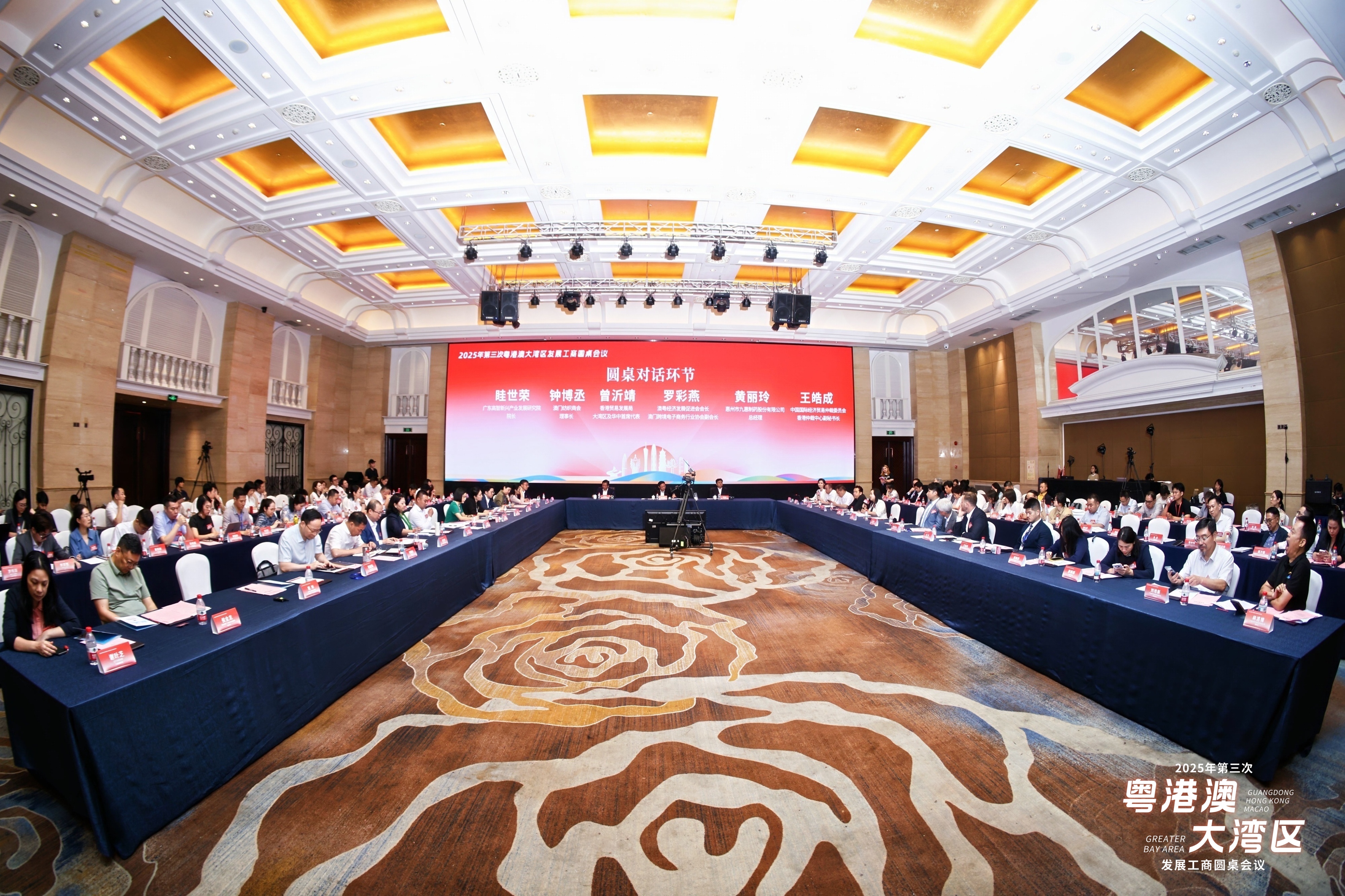 2025年7月22日,2025年第三次粤港澳大湾区发展工商圆桌会议在广东惠州成功举办。本次会议由广东省贸促会、 驻香港代表处、 驻澳门代表处主办,并由惠州市贸促会承办。本次会议主题为“聚焦科技创新与产业合作,打造‘科研—产业—市场’粤港澳三地协同路径”。来自粤港澳三地的57家圆桌会议机制成员单位代表、政府机构代表、当地知名企业代表等约120人出席会议。