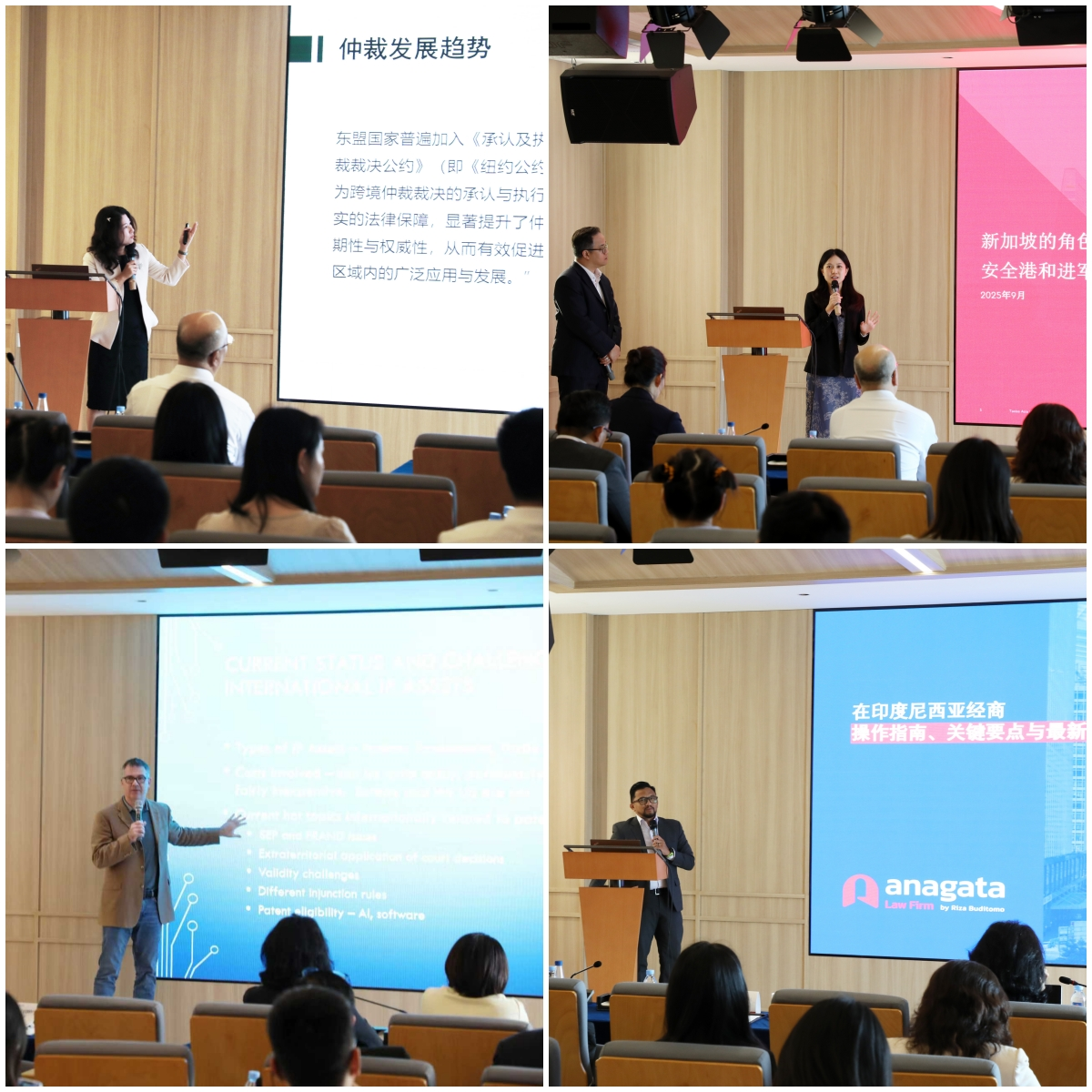 随后,来自新加坡的林有义律师和杨倪律师聚焦新加坡投资环境,指出其作为区域枢纽在税收政策、营商便利性和法律体系方面的显著优势,为企业进入亚太市场提供了重要跳板。来自印尼的资深律师Riza Buditomo、来自马来西亚的刘友富大律师分别就东南亚国家印度尼西亚、马来西亚的市场准入政策、投资动态及实操指南进行解读,为企业提供前沿市场信息和合规建议。资深科技企业高管Brian Siegel对中国企业如何盘活国内外知识产权资产提供了建议,介绍了在知识产权领域企业出海时可能遭遇的风险并提供了成功的知识产权创新机制案例。