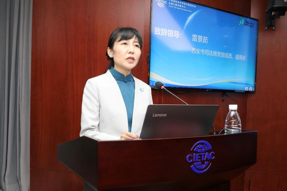 陕西省物流集团有限责任公司党委委员、陕西省物流与采购联合会会长乔继岗,西安市司法局党组成员、副局长雷景茹出席会议并致辞。贸仲丝路中心副秘书长蒋红梅主持开幕式。