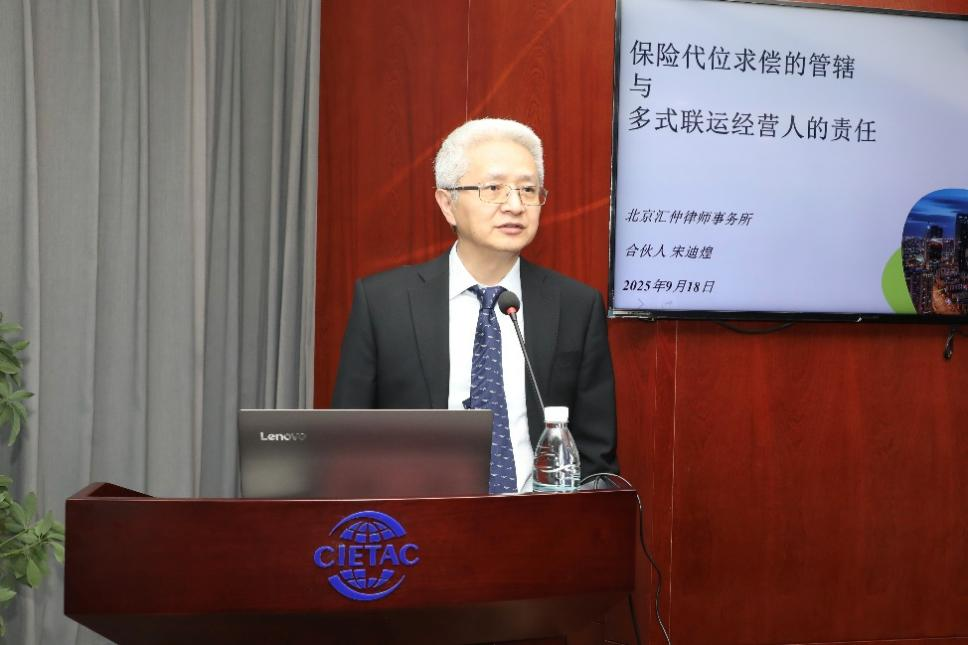 北京汇仲律师事务所资深合伙人、贸仲仲裁员、中国海商法协会副会长宋迪煌先生以“代位求偿与多式联运经营人责任初探”为题,结合实务案例与法律规定,分析了保险人代位求偿是否受被保险人与相对方仲裁协议约束的相关裁判观点,并梳理了多式联运经营人责任认定的法律适用规则,为物流企业在合同起草、应对纠纷等方面提供了宝贵建议。