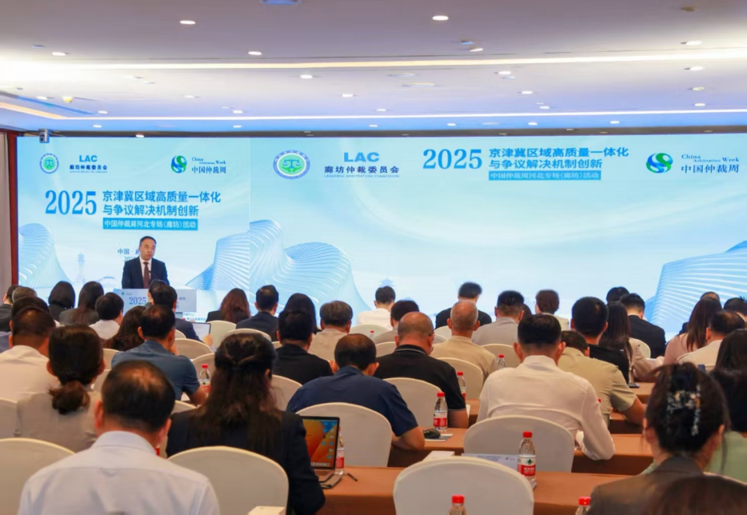 2025年9月19日,2025中国仲裁周河北专场(廊坊)活动“京津冀区域高质量一体化与争议解决机制创新”在廊坊市成功举办。本次活动由河北省仲裁协会、河北省律师协会、中国国际经济贸易仲裁委员会(“贸仲”)雄安分会和河北省国际商事法律服务中心主办,廊坊仲裁委员会 (“廊仲”)承办。司法部公共法律服务管理局仲裁工作处副处长刘世虎出席,中国人民大学涉外法治研究院院长、廊仲第三届委员会副主任杜焕芳,河北省司法厅公共法律服务管理处处长张翼,贸仲立案处副处长兼雄安分会副秘书长吕岩,河北省仲裁协会会长徐文莉,河北省律师协会副会长、廊坊市律师协会会长张唤民出席并致辞,河北省仲裁协会副会长、廊仲副主任兼秘书长程文主持。