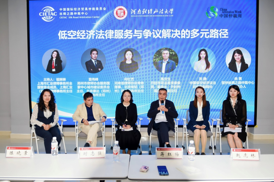 圆桌讨论环节,由上海市汇业律师事务所全国管委会成员、上海汇业(郑州)律师事务所主任祖琳琳主持。开封市司法局党委委员、副局长,开封仲裁委员会副主任高庆生,河南省律师协会常务理事、北京观韬(郑州)律师事务所主任何红艺,中国低空经济法治研究院副院长刘静,郑州市律师协会服务国家中心城市建设委员会主任、北京康达(郑州)律师事务所主任苗伟峰,贸仲丝路中心案件经办人余茜五位嘉宾,从实务视角精准梳理了低空经济全链条的法律风险谱系,提出了覆盖事前合规、事中防控、事后救济的全周期应对策略;同时分享了知识产权保护在低空技术创新中的实践创新,以及国内国际仲裁在低空经济争议解决中的最新案例与机制优势,为构建多元化、立体化的低空经济法律服务体系凝聚了共识。