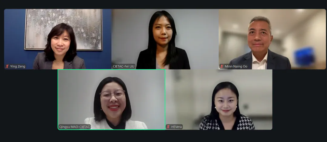 (从上至下,从左至右:曾颖律师、刘飞女士、Minn Naing Oo仲裁员、毛晴雨女士、贺薇蓉女士)