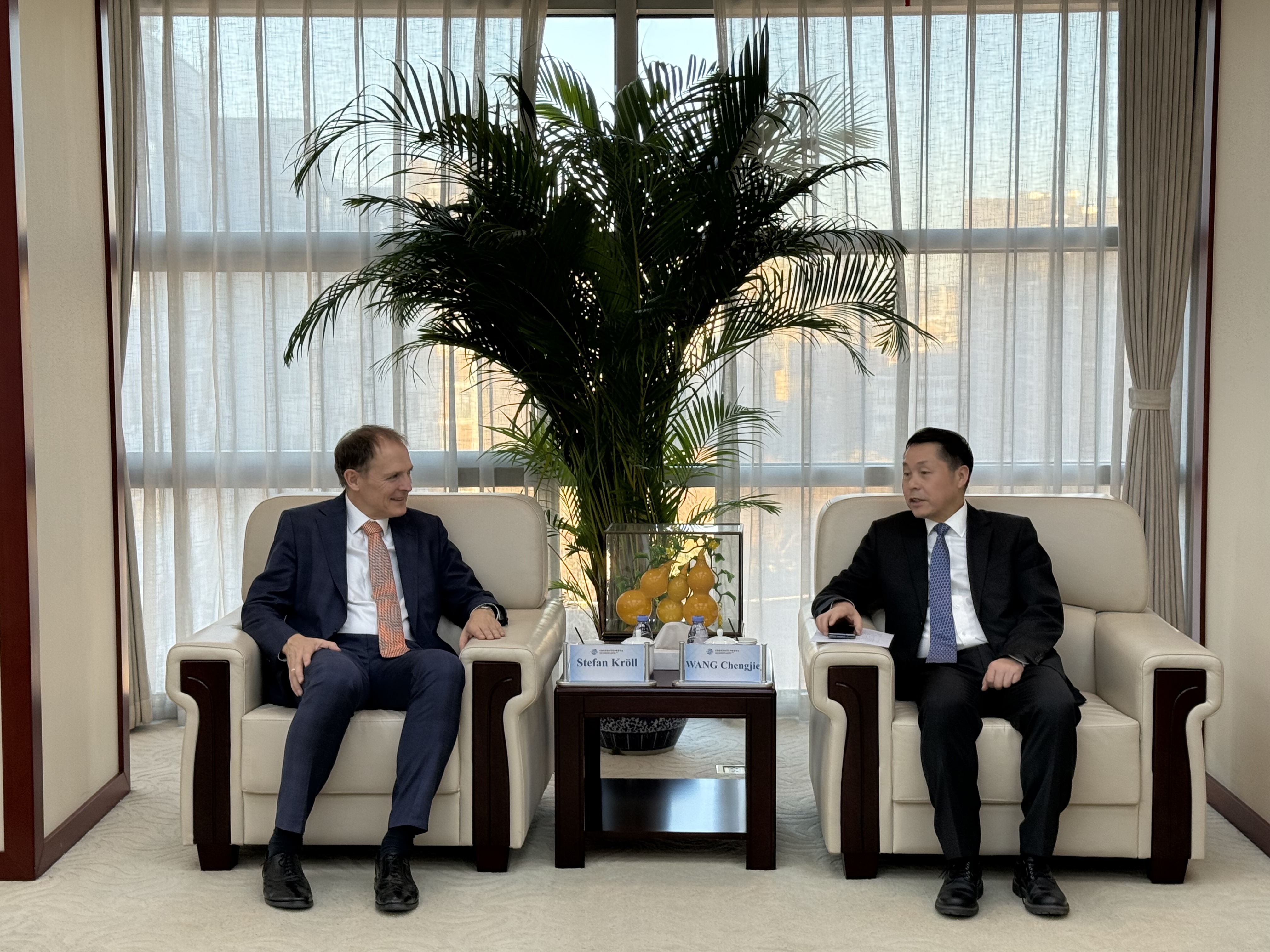 2025 年 12 月 4 日下午,中国国际经济贸易仲裁委员会(以下简称 “贸仲”)副主任兼秘书长王承杰在京接待了 Vis Moot 赛事负责人、德国仲裁院(DIS)主席、德国汉堡博锐思法学院国际争端解决教授 Stefan Kröll,并进行座谈交流。
