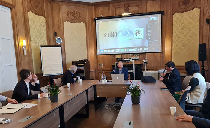 资深纪录片导演、国际制片人、记者,法国L-imagestudio 文化传播公司创始人骆昊以《文明相视——中西方艺术世界里对方形象的演变》为题进行授课,形象生动地展现了东方艺术创作中的西方世界和西方艺术创作中的中国形象。