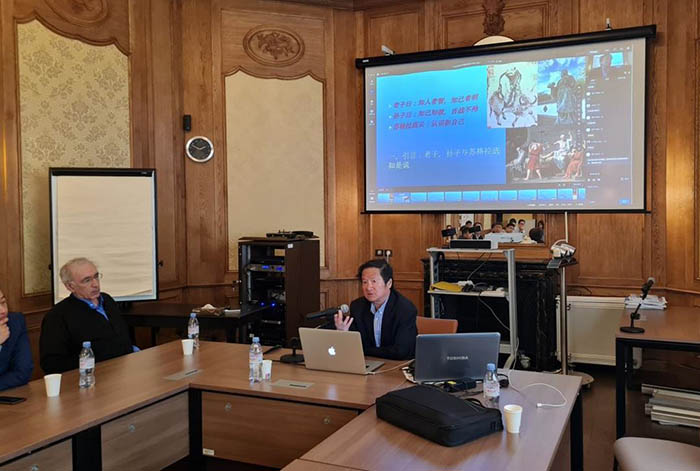 欧洲汉语教学协会会长、世界汉语教学学会副会长白乐桑教授以《通过一滴水可以了解大海——论法中文化及思维差异》为题进行授课。通过案例,从文字语法、饮食文化、园林艺术、绘画、节日等方面讲解了中法文化及其背后思维方式的差异,以及如何理解两种文明的互补关系。