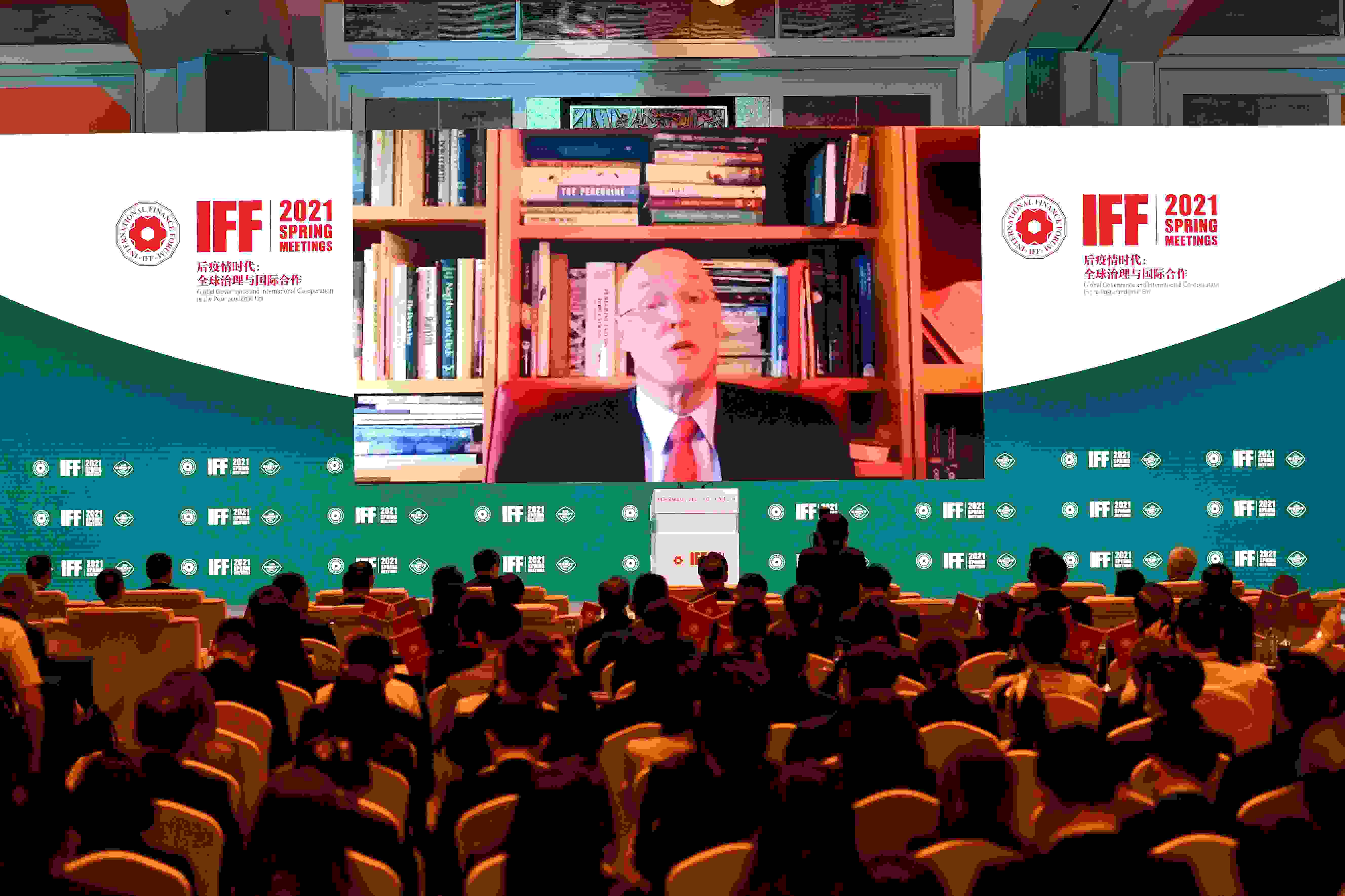 国际金融论坛(IFF)大会主席、全国政协原副主席、中国人民银行原行长周小川出席开幕式并发表演讲。联合国秘书长古特雷斯,国际货币基金组织总裁格奥尔基耶娃,全球疫苗免疫联盟主席、葡萄牙前总理巴罗佐,美国前财长、保尔森基金会创始人兼主席亨利·保尔森等在开幕式上发表视频致辞。 会长高燕主持开幕式。来自50多个国家、地区和50多家国际组织的政商学界代表参会,其中约500人现场参会,围绕后疫情时代的全球治理与发展、全球可持续金融、全球抗疫合作、中欧碳定价会议、全球经济格局变化及挑战、数字货币与未来数字化转型、中国新发展格局与“十四五”趋势等重要议题展开研讨。会议期间还发布了《国际金融论坛2021年中国报告》和《2021“一带一路”调查报告》,为全球经济治理贡献“中国方案”。