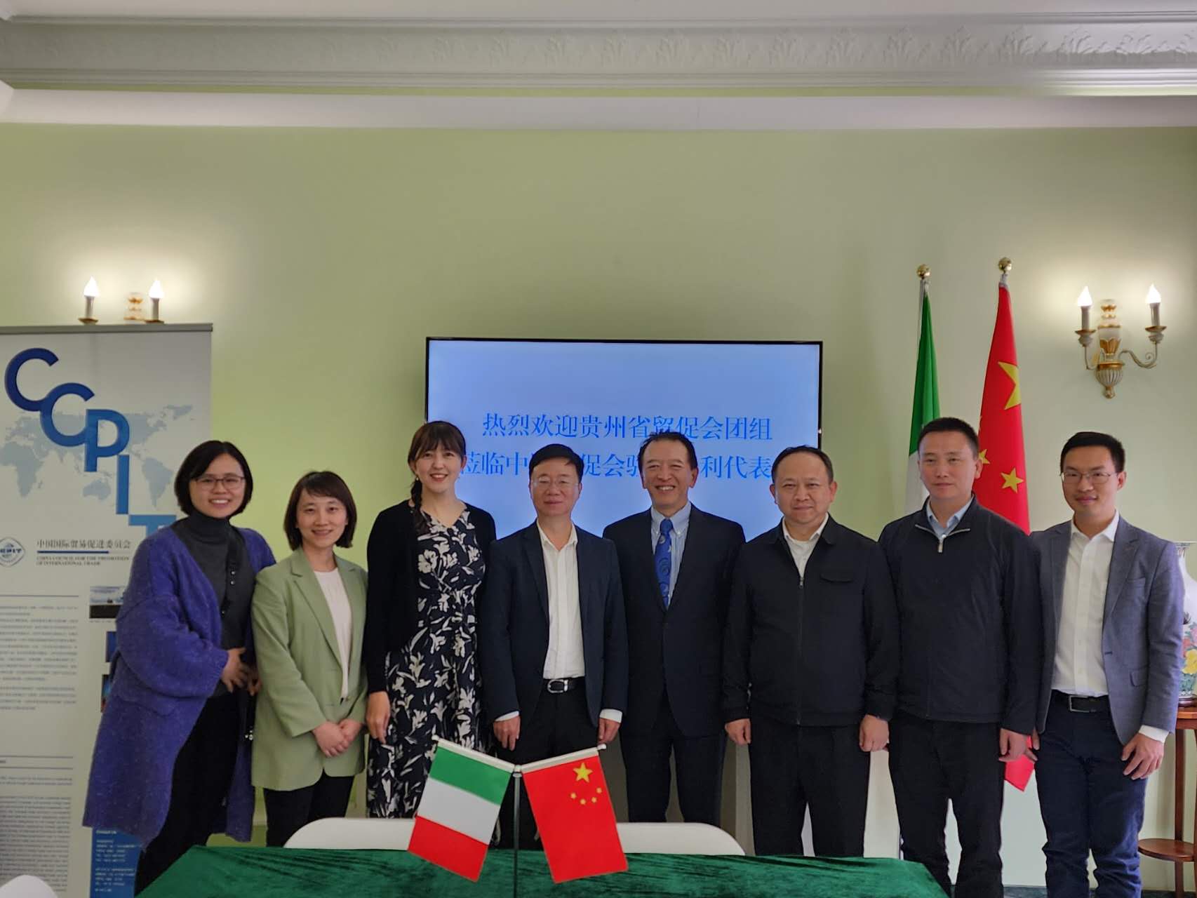 5月10日,驻意大利代表处副总代表姚鲁杰会见贵州省贸促会苗宏会长率领的访意代表团一行。