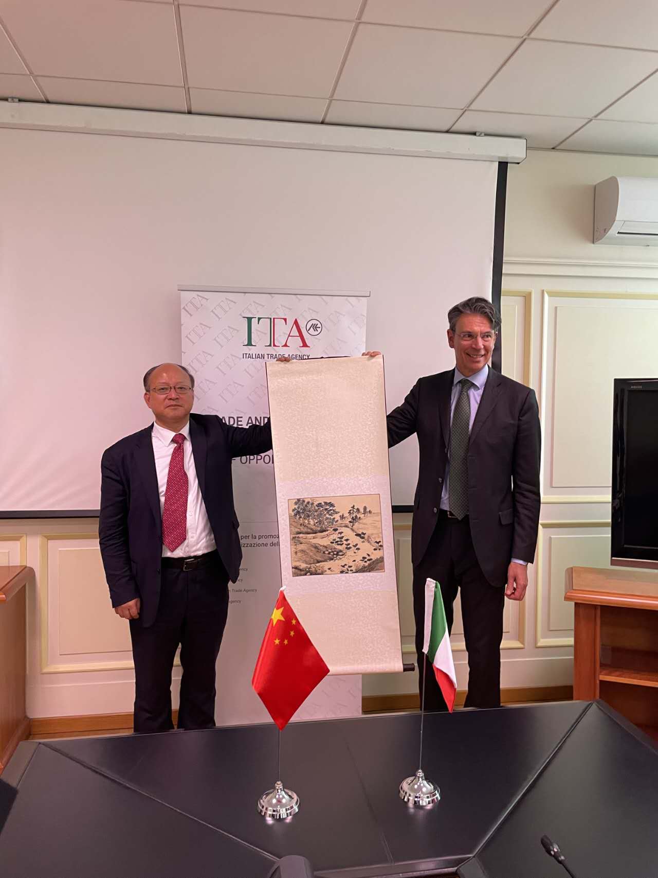 3月26日, 陈建安副会长在罗马会见意大利对外贸易委员会总经理洛伦佐·卡兰蒂,双方就中意经贸合作、续签合作备忘录等议题进行了深入交流。陈建安副会长就拟在华举办的第二届中国国际产业链促进博览会、2024年全球 峰会等重大活动向意方发出邀请。