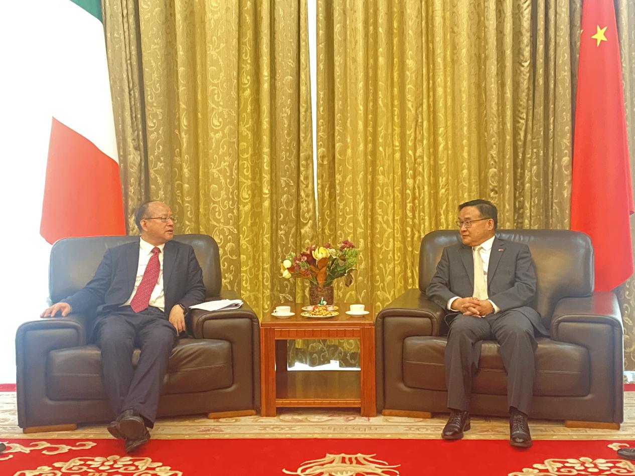 3月26日上午,贾桂德大使会见 陈建安副会长。双方就中意关系、双边经贸合作、第二届链博会推介等议题深入交换意见。使馆李滨公参陪同会见。